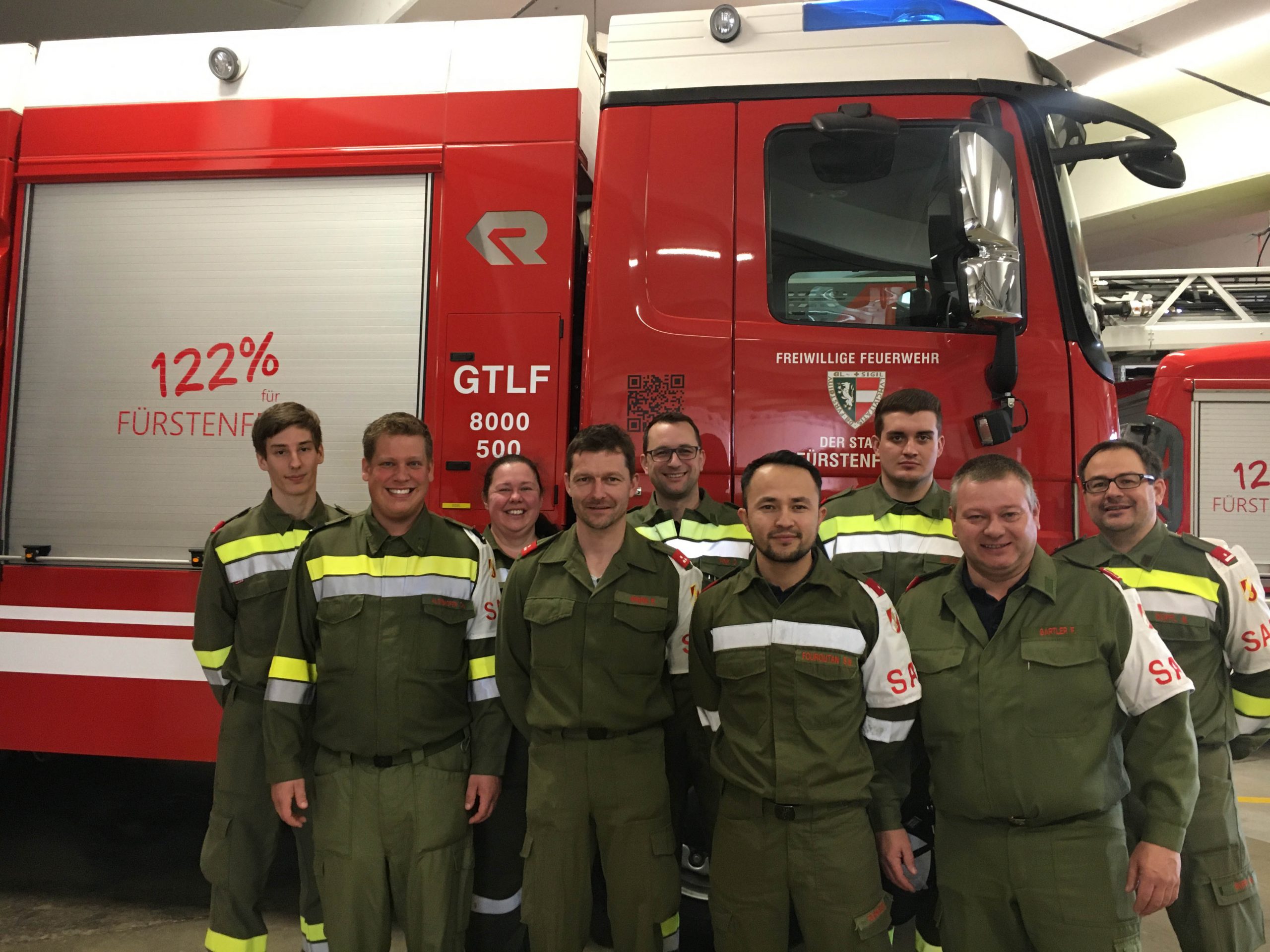 v.l.n.r.: HFM Regina Halbedl, LM d. S. Christoph Kloibhofer, FM Fabian Sommer, HFM Richard Krenn, LM d. V. Daniel Fink, LM d. F. Christoph Zeiler, OBI a. D. Franz Gartler, LM Markus Woppl und FM S.W. Fouroutan