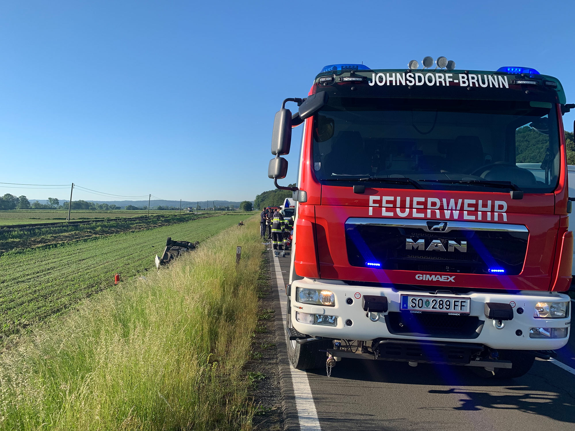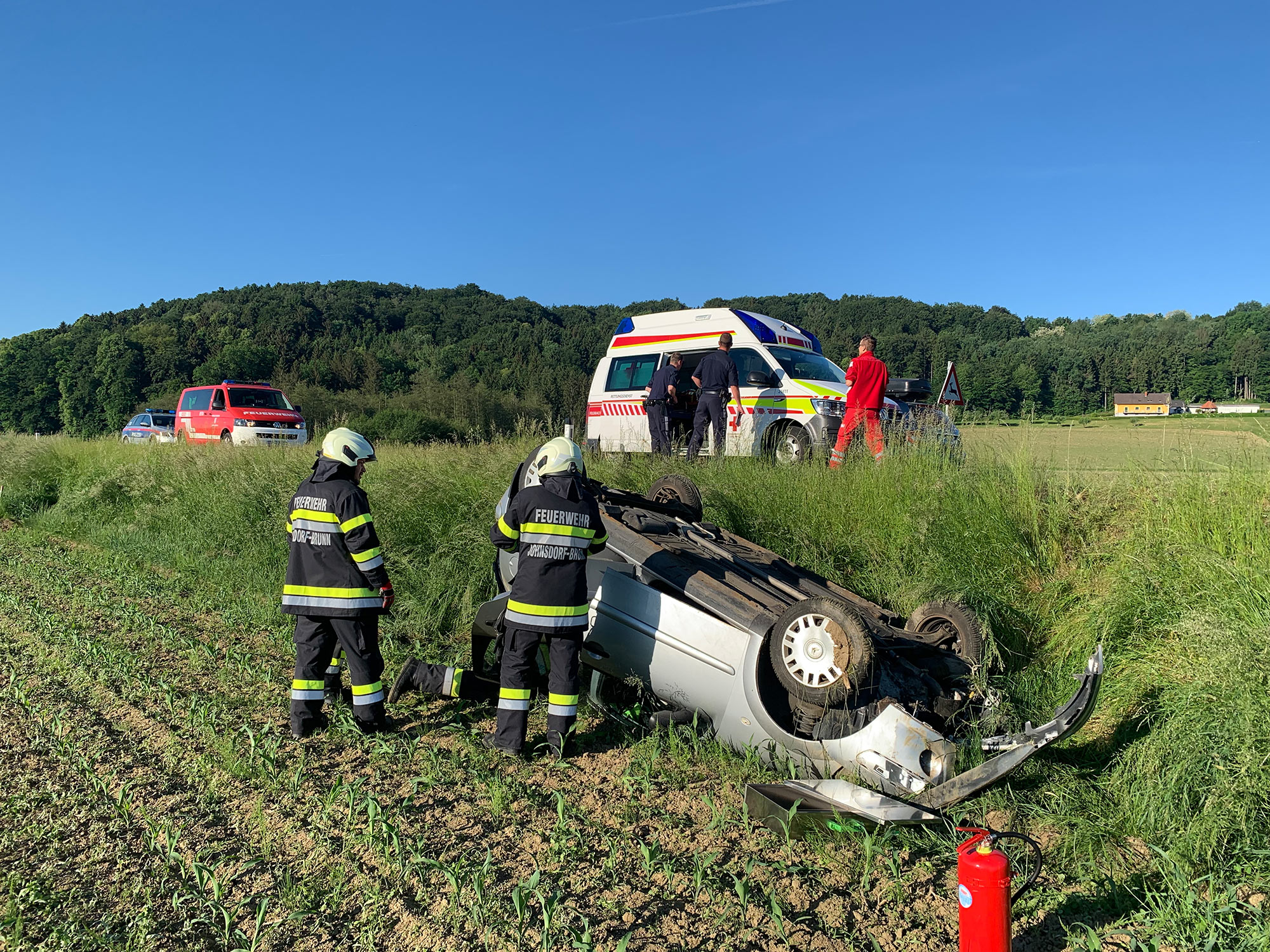 Am 19.05.2022 um 6:58 Uhr wurde die FF Johnsdorf-Brunn zu einem VU mit PKW Alarmiert. Beim Eintreffen war das ÖRK schon vor Ort und führte die Erstversorgung der Verletzten Person durch. Wir unterstützten sie und führten danach die Fahrzeugbergung mit dem Angeforderten Abschleppdienst durch. Die Straße musste gesperrt werden und der Verkehr wurde Örtlich umgeleitet.